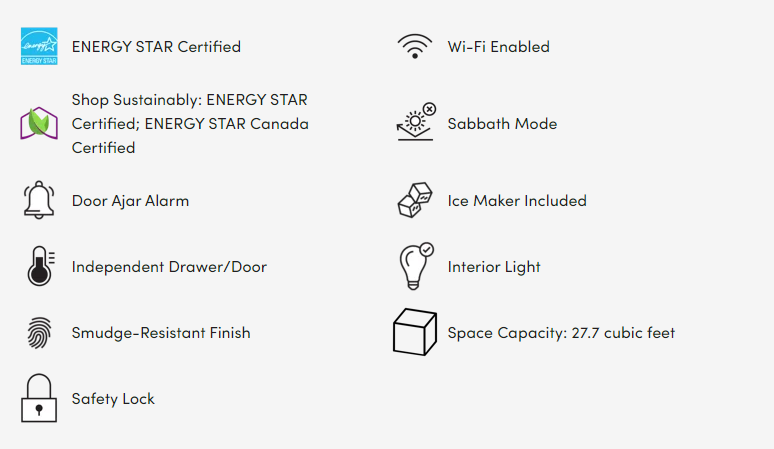 - Showcase LED Lighting: Positioned throughout the interior and under fresh food doors to spotlight foods inside the refrigerator and in the freezer