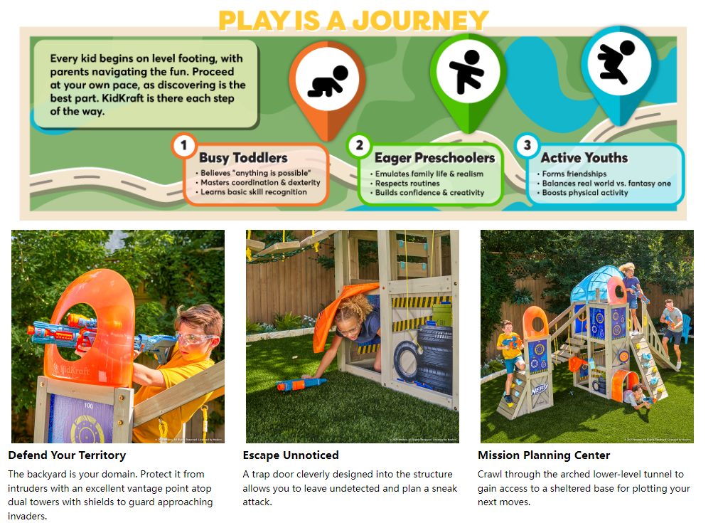 Combine a playset with Nerf features and you get the KidKraft to Nerf command base battle for the ultimate site for epic blaster battles. Storm across bridges, ladders, and gangplanks to gain the best vantage point. Exit quickly through the escape trap door. Stockpile blasters and darts in the battle prep area or pulley crate. Plan missions and practice your aim to become a battle expert. Test your skills with a spinning target. Be in control of the backyard with this action-packed multi-tower.