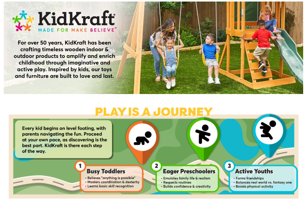- 8 potential play areas for up to 9 kids from ages 3-10