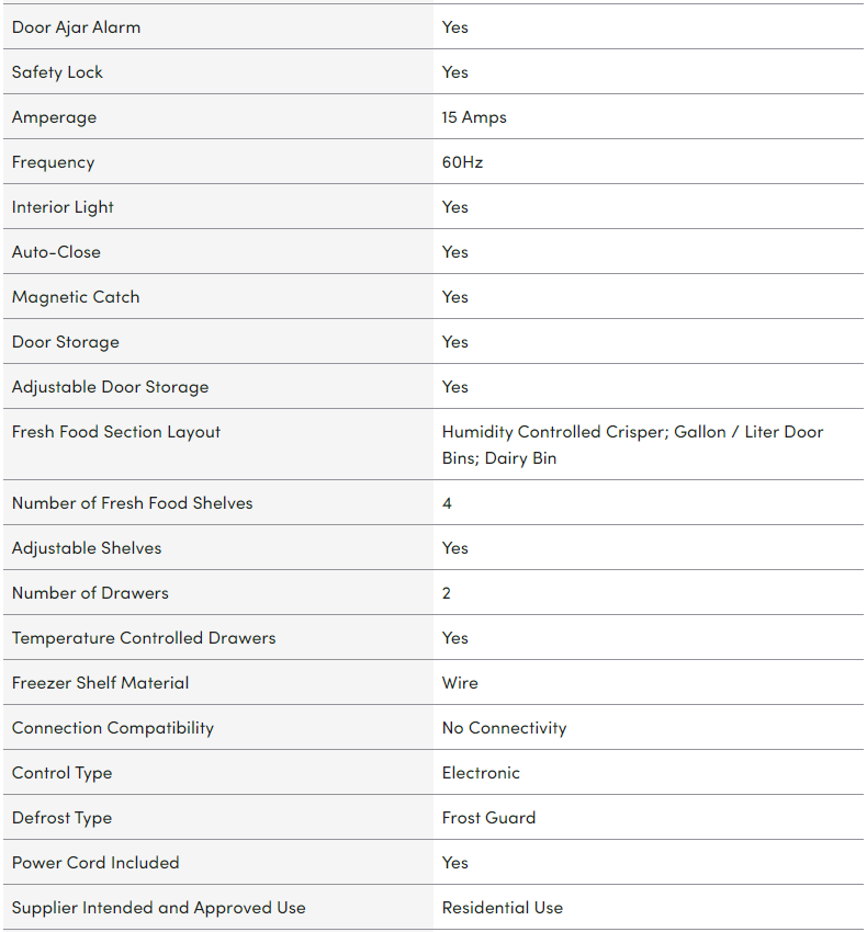 - Door Alarm: Keep your food fresh as long as possible with a closed-door alarm that signals when the fresh food or freezer door has been left open too long.